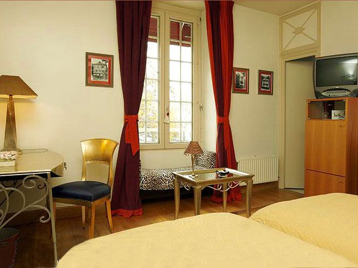 Un escalier en bois de noyer (ou l’ascenseur, bien sûr) vous mène aux chambres, quatre d’entre elles s’ouvrant sur une terrasse donnant sur le parc - le panorama est dominé par la chaîne de Belledonne, et vous embrassez à la fois le parc et la forêt de sapins de Chamrousse. Au 4ème étage, « ambiance très cosy et poutres apparentes dans les chambres mansardées ». Notez que le prix des chambres dites classiques est de 179 €, ce qui est tout à fait raisonnable, et qu’il y a même des chambres mansardées à 146 €. (tarif en chambre double). Les chambres sont joliment décorées, et celles qui ouvrent sur le parc verdoyant sont plus agréables, évidemment, que celles qui donnent sur la place et le casino . Malgré le fait que la route ne soit pas loin, le bruit est minime. Donc, le calme est garanti.