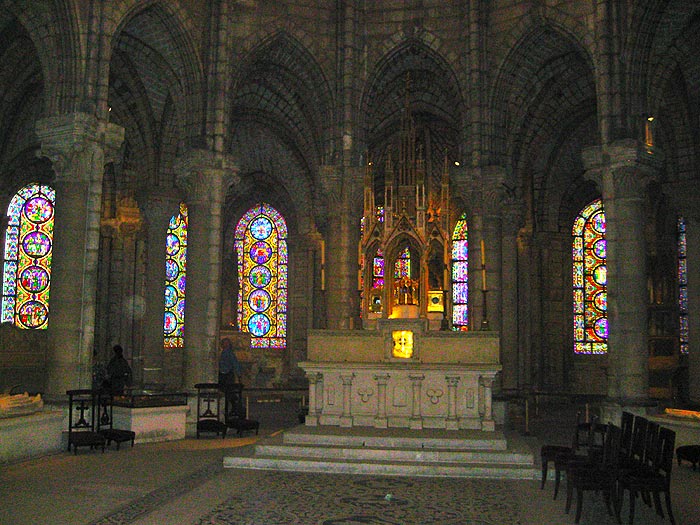 Vitraux illustrant la vie des rois et reines de France, iconographie choisie pour garnir les verrières hautes de la basilique lors des restaurations du XIXe siècle.